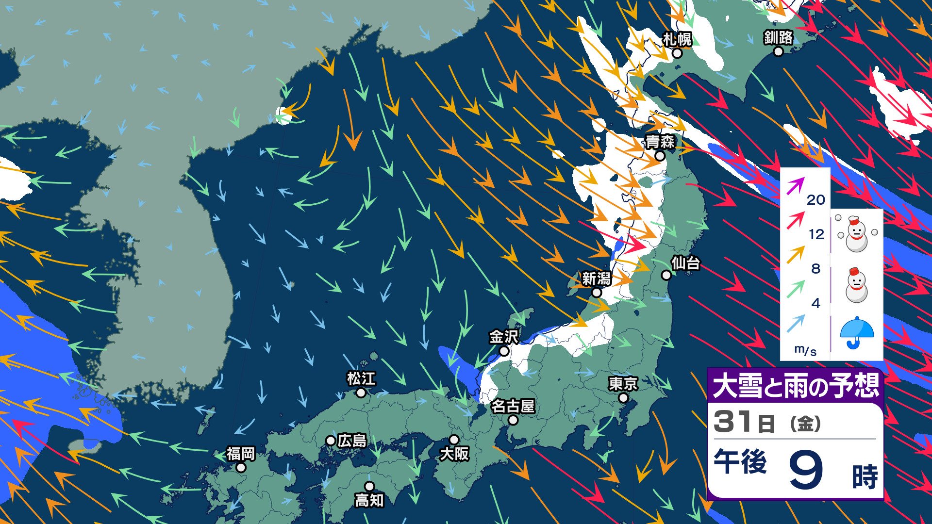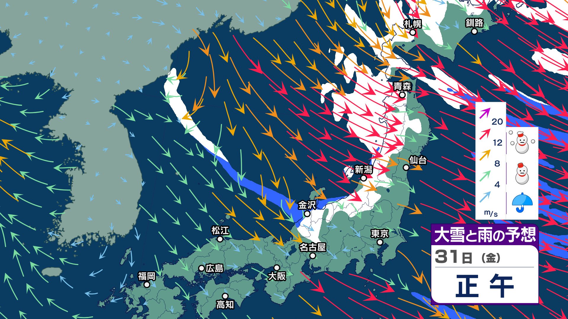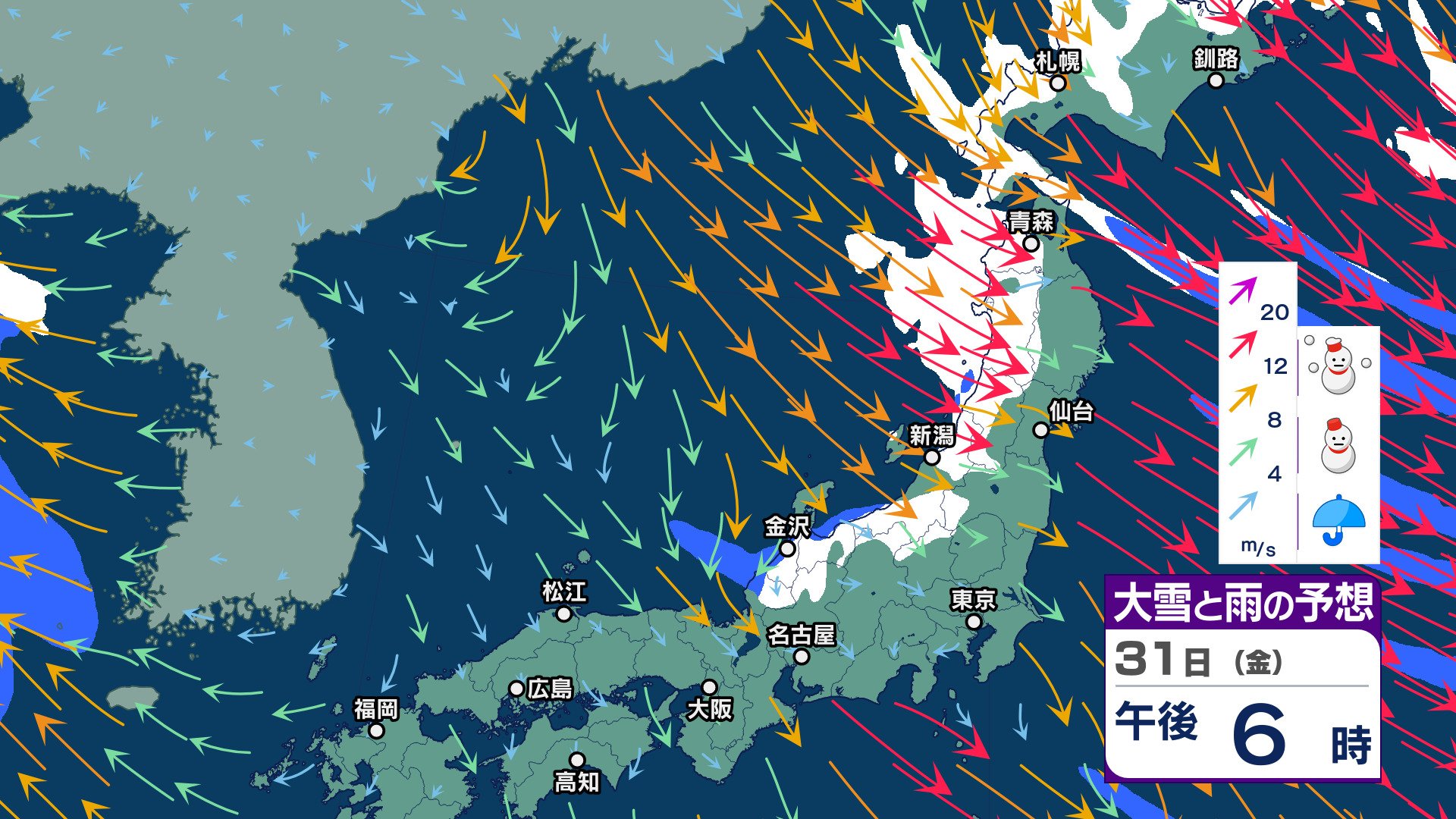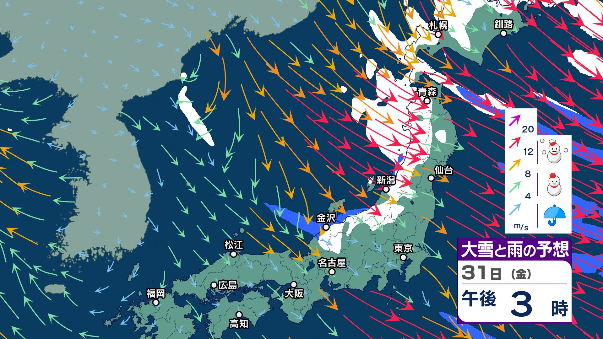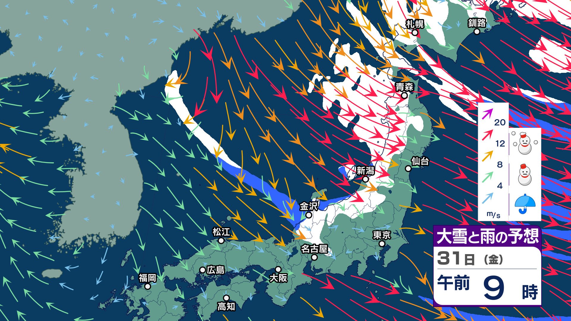 【大雪情報】東北日本海側南部では大雪となる所も 山沿いで80㎝平地で50㎝の降雪予想【雪と雨と風のシミュレーション】 チューリップテレビ 2025年1月30日(木) 13:41 国内 天気 雪と雨と風のシミュレーション 31日(金)
