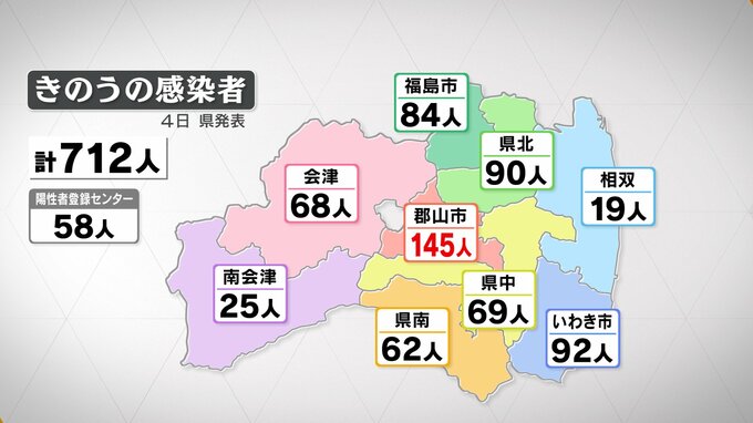新型コロナウイルスについて、3日、福島県内では712人の感染が確認されました。3日連続で前週の同じ曜日を下回りました。【内訳】9保健所と陽性者登録センター福島市 84人郡山市 145人いわき市 92人県北 90人…