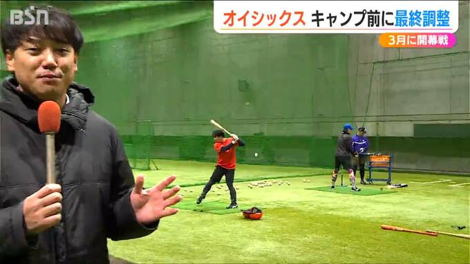 【記者リポート】「NPBファームリーグ参加2年目のシーズンを迎えるオイシックス。キャンプ前 最後の練習が行われ、選手たちが汗を流しています」
