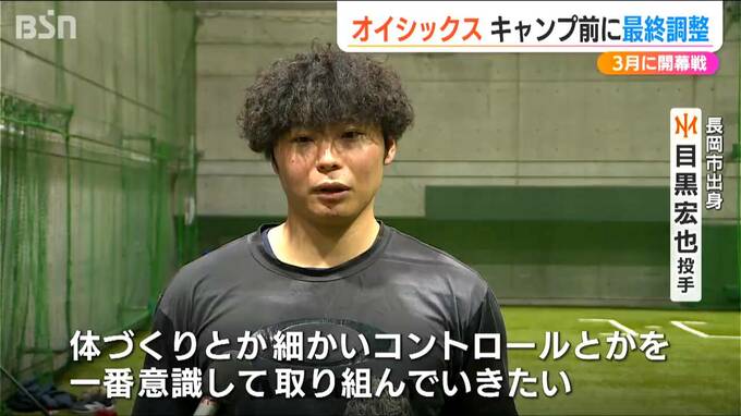 【長岡市出身 目黒宏也 投手】「去年の課題は自分の中ではっきりしているので、体づくりとか細かいコントロールとかを一番意識して取り組んでいきたい」