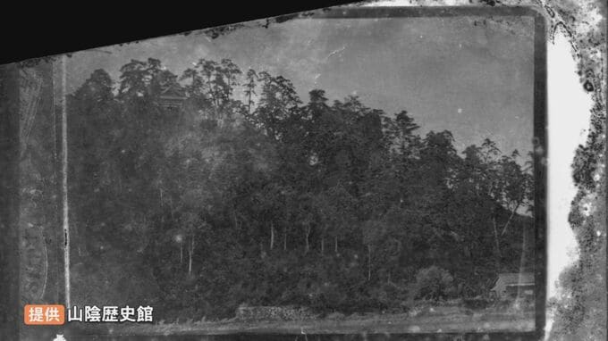 寄贈された写真のなかには、米子城天守を鮮明に収めた写真の複写も2枚ありました。こちらが南側からとらえた一枚です。