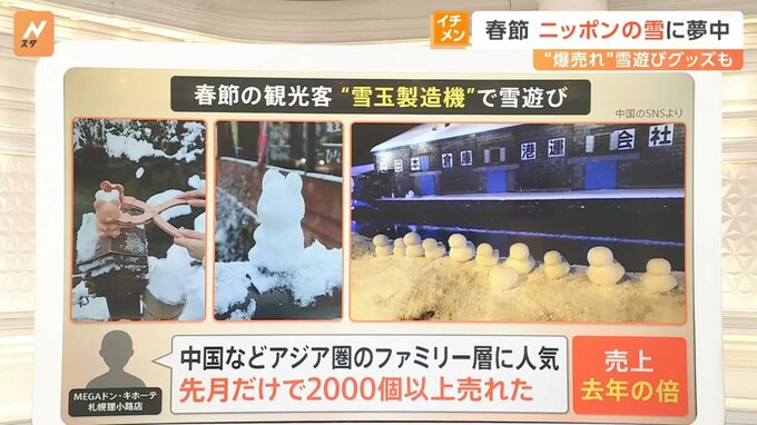 MEGAドン・キホーテ 札幌狸小路店によりますと「(雪玉製造機は)中華圏のファミリー層に人気。2024年12月だけで2000個以上売れた」といいます。