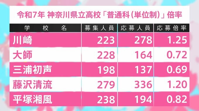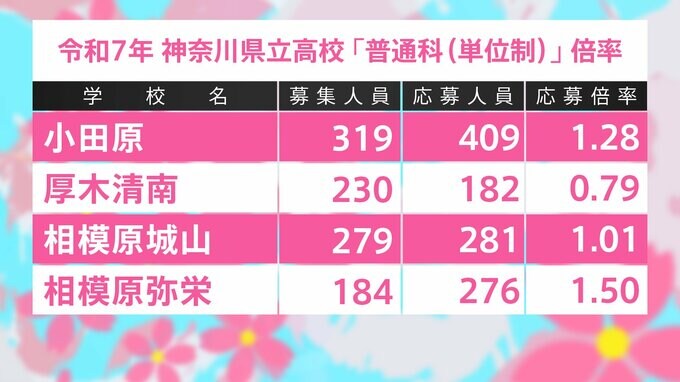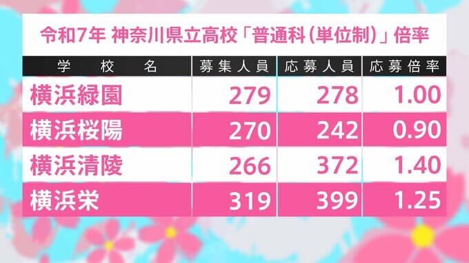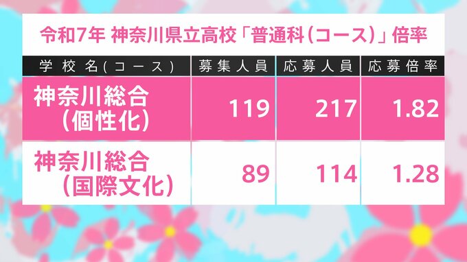 神奈川県立高校入試2025 全日制普通科 志願倍率は横浜翠嵐2.22倍、新城2.05倍、多摩1.85倍に【令和7年度高校受験】 TBSテレビ 2025年1月30日(木) 20:02 国内 学校別の一覧 神奈川総合(個性化)1.82倍、相模原弥栄1.50倍