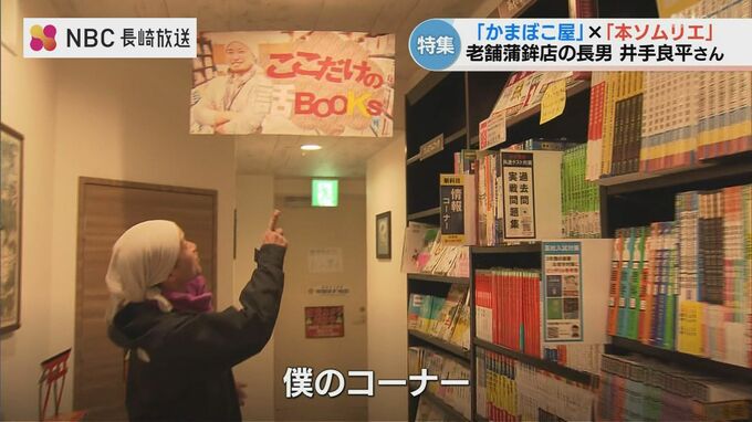 10年前に作られた特設コーナーで、「本ソムリエ」である井手さんお勧めの本をぜひ並べたいという書店の社長たっての希望で設置されました。
