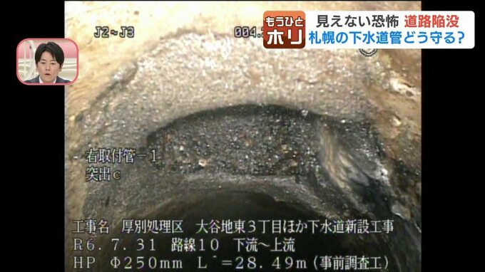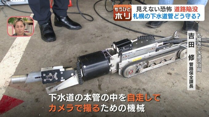 「下水道本管の中を自走して、カメラで撮る機械になります。人が入れないところはこういったカメラで調査することになる。小さな破損が経過して、ひび割れが広がり、陥没につながる恐れがある。そのため定期的な調査が必要」