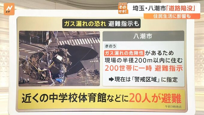 29日、八潮市でガス漏れの危険性があるため現場の半径200m以内に住む200世帯に一時 避難指示