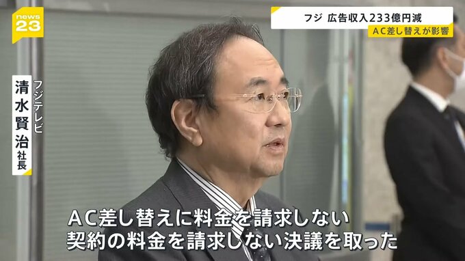 フジ 広告収入233億円減