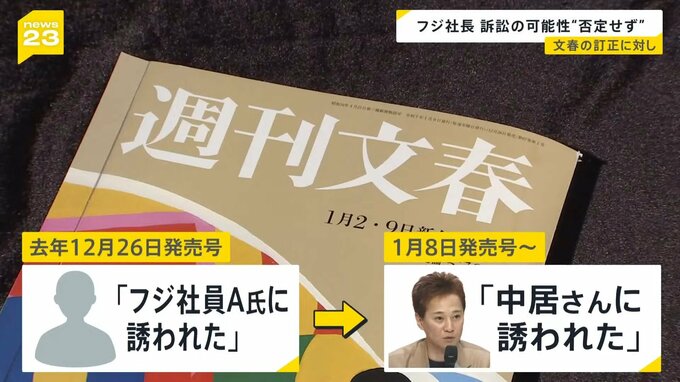 文春は当初、トラブル当日、女性が「フジテレビ社員・A氏に誘われた」と報じていましたが、「中居さんに誘われた」と“修正”したのです。文春が修正をホームページで公表したのは、フジテレビが”やり直し会見”をおこなった翌日でした。