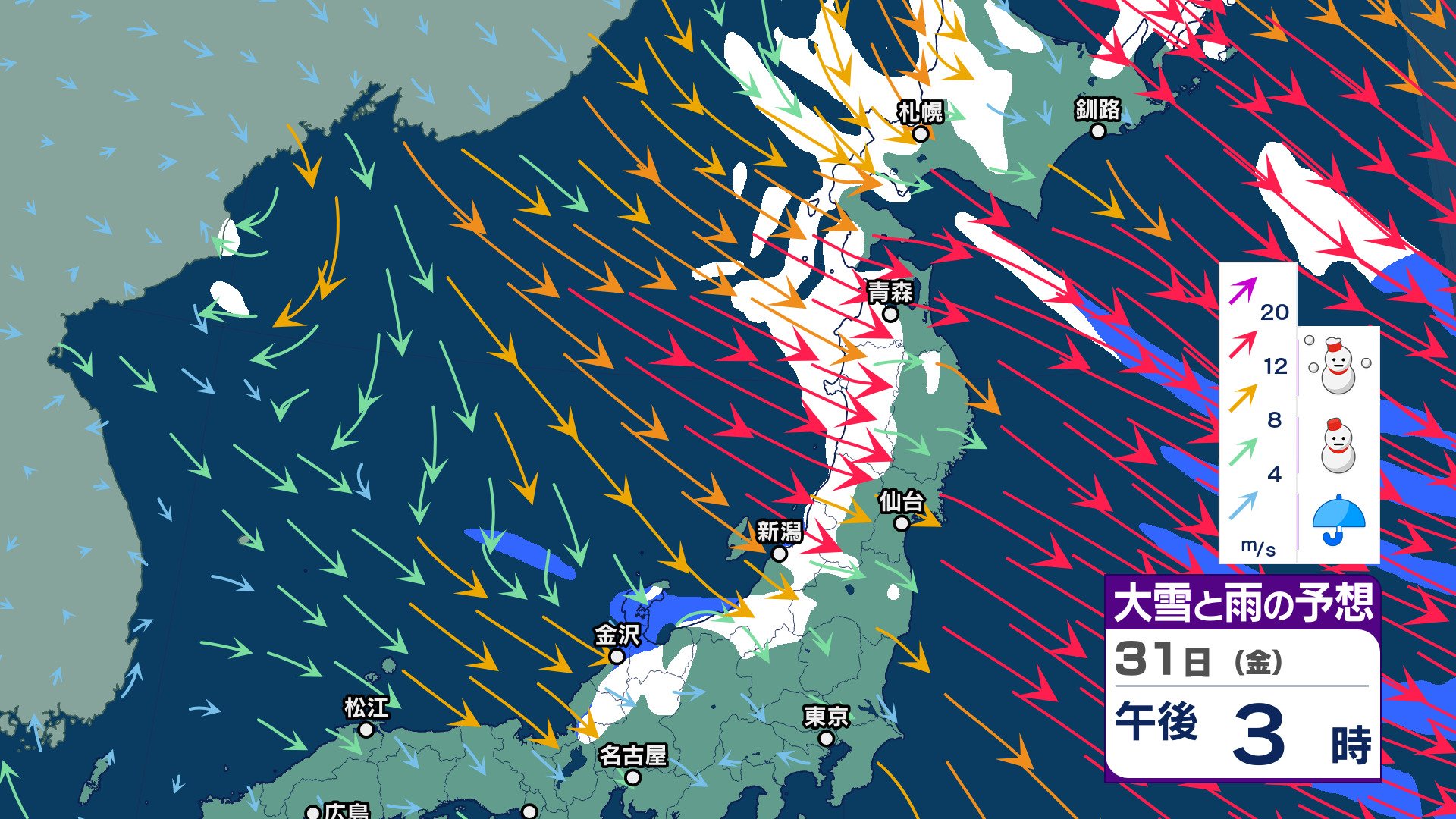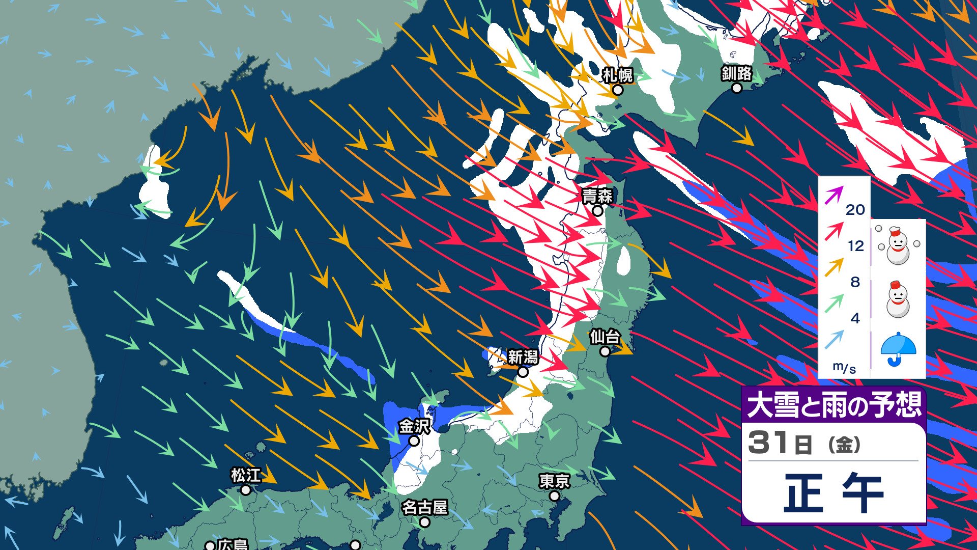 【気象情報】長野県と関東地方北部は“警報級の大雪”のおそれなくなる あす31日朝までの24時間予想降雪量は関東北部10㎝・甲信20㎝【雪と雨と風のシミュレーション】 チューリップテレビ 2025年1月31日(金) 10:00 国内 天気 雪と雨と風のシミュレーション 31日(金)
