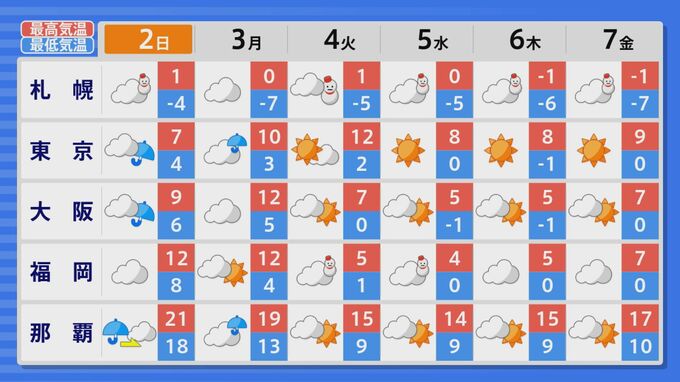 【最新の予想シミュレーション】2月2日の節分は東京など関東で“冷たい雨”や“雪・みぞれ”が降る天気に 「南岸低気圧」が土日に西日本から東日本を通過 北陸放送 2025年1月31日(金) 13:01 国内 1日は西日本の広い範囲で雨が降るでしょう。 2日は、東日本で雨や雪が降る天気になる見込みです。 週明け以降は2月4日(火)ごろから強い寒気が流れ込み、気温は低くなるでしょう。冷え込みが全国的に厳しくなりそうで、日本海側の地域では大雪が続くおそれがあります。