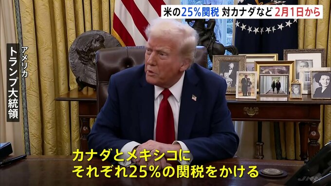 アメリカのトランプ大統領は、カナダとメキシコに対して2月1日から25%の関税をかけると改めて表明しました。アメリカ トランプ大統領「カナダとメキシコにそれぞれ25%の関税をかける。両国との間には巨額の貿易赤…
