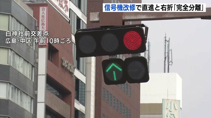 警察によりますと右折と直進を完全に分けることで、無理な右折による車両同士の右直事故や、右折車両と歩行者との交通事故を防ぐ意図があるということです。