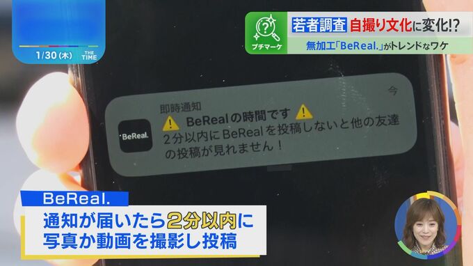 最大の特徴は、アプリから通知が届いたら「2分以内に自撮りをして投稿しなければいけない」というルールです。
