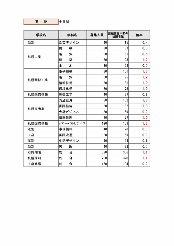 全日制普通科で、当初の出願者数より最も減ったのは、札幌西で27人減少し、倍率は1.5倍から1.4倍になりました。