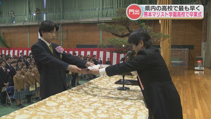 熊本マリスト学園高校(熊本市東区)では、熊本県内の高校で最も早い卒業式が行われました。大学入試のピークを避けるために毎年この時期に行っていますが、今年はインフルエンザなどの感染対策で、式では代表生1…