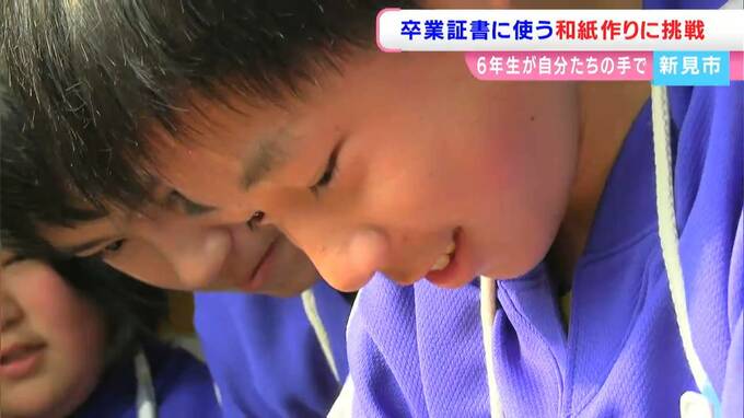 ことしの春に卒業する岡山県新見市の小学6年生が、地元の工房で卒業証書に使う和紙づくりに挑戦しました。