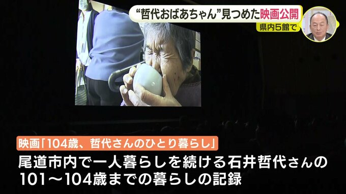 100歳を超えても尾道市内で一人暮らしを続ける女性、石井哲代さんのドキュメンタリー映画が広島県内5館で公開され、大勢の人で賑わいました。