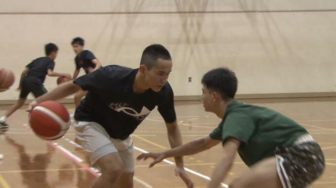 宗龍は、平良家の次男。三男の奏龍も、開志国際高校のバスケットボール部で活躍。取材の日は四男の孔龍が、一緒に汗を流していました。