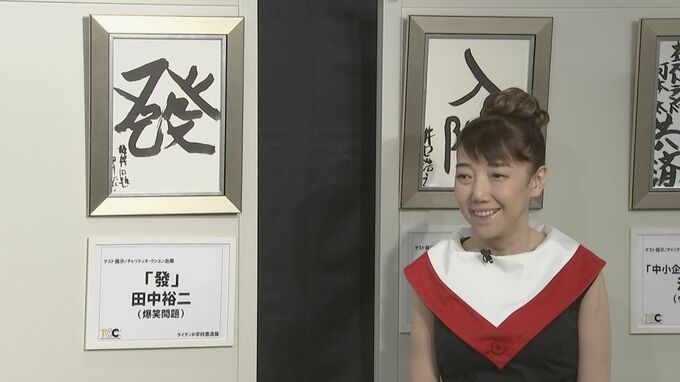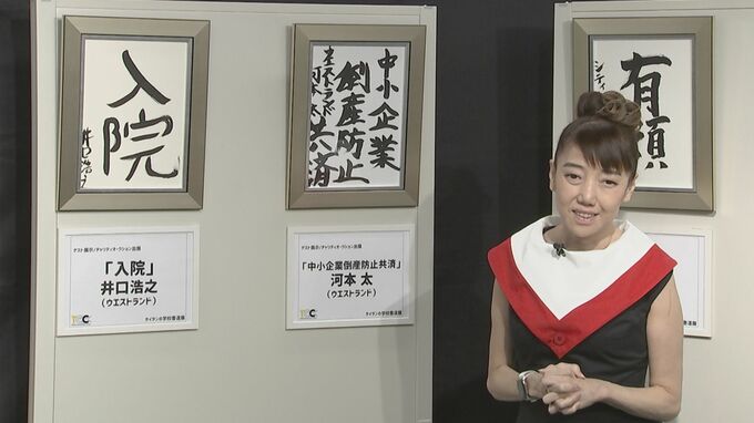 1つ1つの作品について、独自の解釈で説明した光代社長は、ウエストランド・井口さんの『入院』という字について、“河本が予想外のことをやらかしたために、(井口が)元々予定していた入院と手術が隠れちゃった”と苦笑い。“井口にしてみれば、かまってほしいというか、誰かなぐさめてほしいっていう気持ちがあるのかな”と、井口さんの気持ちに寄り添いつつ、病院の付き添いに毎回のように自分が行っていたことに触れ、“お母さんじゃないので... 彼女ができたら良いなと。早く結婚してもらいたいなと思ってます”と話して、会場を笑わせました。