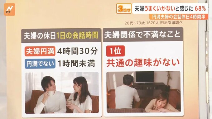 ちなみに、夫婦関係で不満なこと1位は「共通の趣味がない」でした。