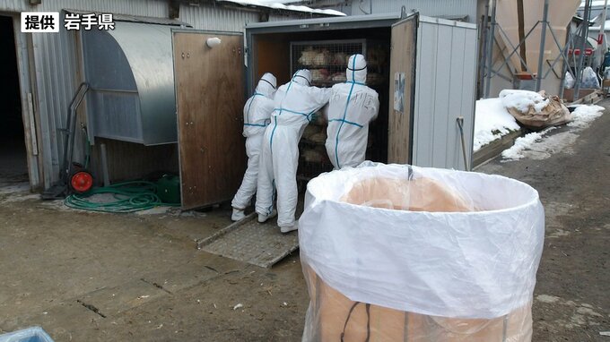岩手県内の養鶏場は今年に入って相次いで計5例の高病原性鳥インフルエンザウイルスの発生が確認されています。1月22日には盛岡市の2つの養鶏場で4例目と5例目が確認され、ウイルスのまん延を防ぐため防疫措置が進められています。