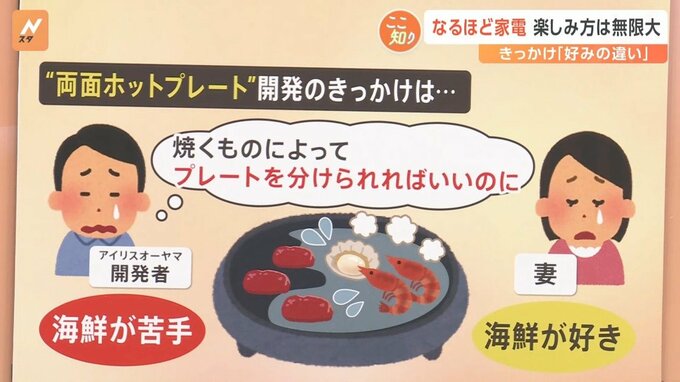 開発者は海鮮が苦手。一方で奥様は海鮮が大好き。同じホットプレートで焼くと海鮮のエキスが…