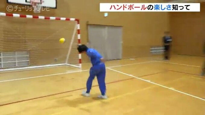 富山県氷見市を拠点とするハンドボールチームの富山ドリームスが30日、高岡市内の小学校でハンドボールの楽しさを伝えました。