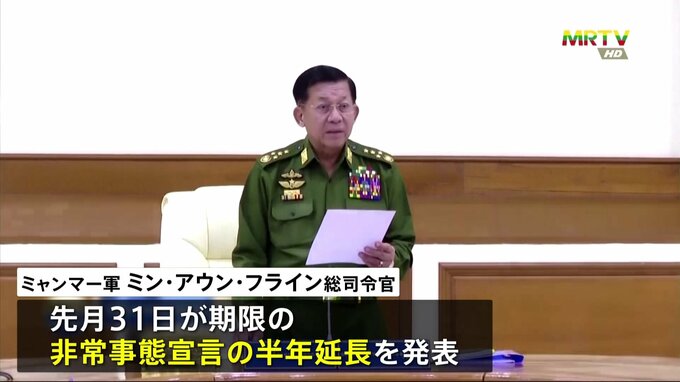 ミャンマーで起きた軍事クーデターから、きょうで4年となるのを前に、軍事政権は非常事態宣言の延長を発表しました。ミャンマー軍のトップ、ミン・アウン・フライン総司令官は、先月31日が期限となっていた非常事…