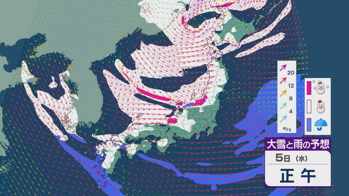 【大雪情報】この冬一番の“最強寒波”は2月4日(火)ごろ到来 寒波と冬型気圧配置は来週末にかけても続き北陸など日本海側では大荒れのおそれ 最新の雪と風シミュレーション 北陸放送 2025年2月1日(土) 18:02 国内 雪と風の予想ですが、4日あたりから雪の降り方が強まりそうです。 日本海側では、西日本から北日本まで広い範囲で雪が降り続く見込みです。日本海で大陸からの風が収束するJPCZ(日本海寒帯気団収束帯)の影響もありそうで、発達した雪雲が北陸に流れ込みそうです。 5日(水)や6日(木)も雪の降り方は強く、大雪になるところもありそうです。また、沿岸部を中心に風も強まりそうです。