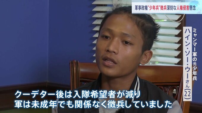 ミャンマーの軍事クーデターからきょうで4年。内戦が続くなか、軍事政権は未成年の子どもたちまで徴兵していて、深刻な人権侵害が懸念されています。2021年の軍事クーデター後、今も全土で、少数民族や民主派の武…
