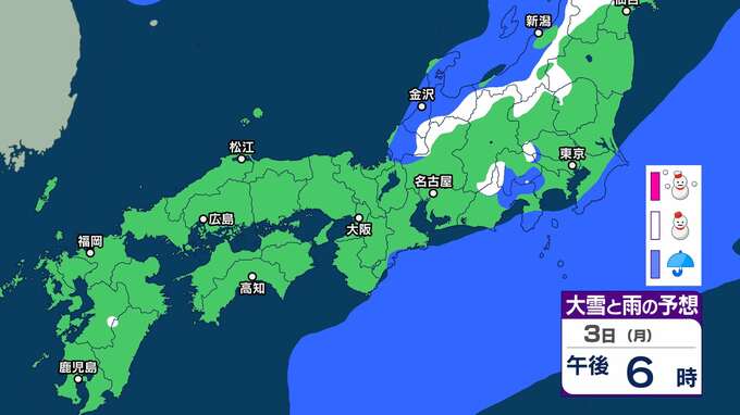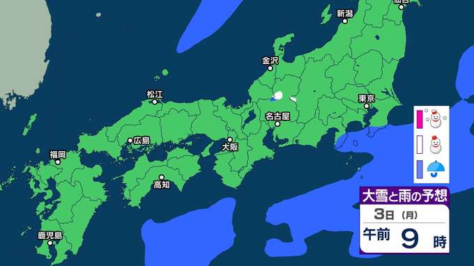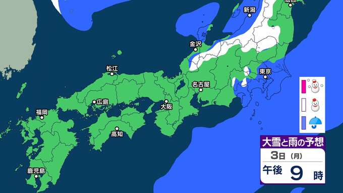 2日の関東の雪は朝がピークで積雪のおそれ 大雪警報発表の可能性は「中」レベル 東京23区で3センチの降雪予想【雪雨シミュレーション】 チューリップテレビ 2025年2月1日(土) 20:00 国内 暮らし・マネー 3日(月)雪雨シミュレーション