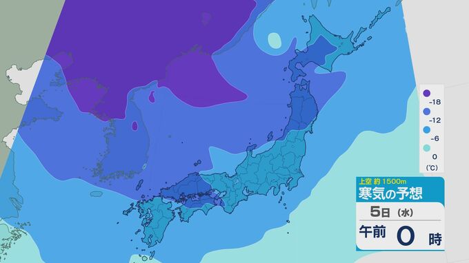 【大雪情報・最新の予想シミュレーション】4日(火)ごろから北陸など日本海側では大雪に この冬一番の“最強寒波”と強い冬型で大荒れの天気が続くおそれ 北陸放送 2025年2月2日(日) 11:53 国内 冬型の気圧配置が強まることに加え、4日ごろから上空の寒気もかなり強まりそうです。5日午前0時の上空およそ1500メートルの寒気の予想ですが、西日本や東北で-12度以下になっています。 寒気はかなり強く、週末土日にかけて上空およそ1500メートルの気温は北陸で-10度以下と、「降れば雪」の状態が続きそうです。