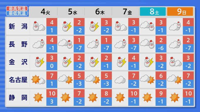 【大雪情報・最新の予想シミュレーション】4日(火)ごろから北陸など日本海側では大雪に この冬一番の“最強寒波”と強い冬型で大荒れの天気が続くおそれ 北陸放送 2025年2月2日(日) 11:53 国内 北陸では4日以降雪が降り続くでしょう。 発達した雪雲が流れ込み、雷をともない大雪になるところもありそうです。大雪による交通障害や農業施設への被害、ふぶきや吹きだまりによる交通障害、高波に注意・警戒し、なだれにも注意してください。警報級の大雪に警戒が必要な1週間になりそうですが、気象の状況によっては外出を控えるなど対策が必要になるかもしれません。最新の情報に注意をしてください。