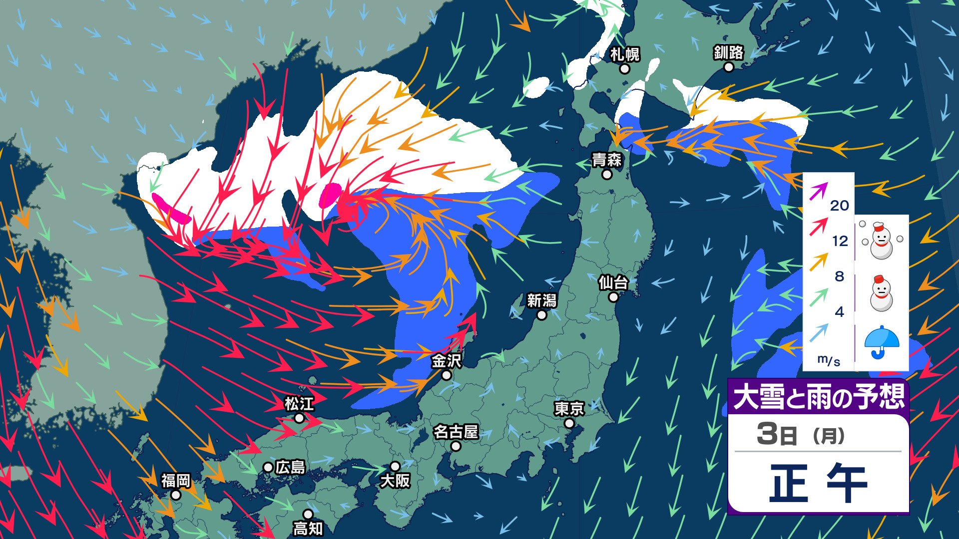 【大雪情報】「警報級の大雪」となる可能性 九州北部・南部は4~6日頃 四国は5~6日頃 降雪予想は九州北部で3~7㎝、四国は平地で5㎝山地で15㎝(4日午後6時までの24時間)【雪と雨のシミュレーション】 チューリップテレビ 2025年2月2日(日) 16:04 国内 暮らし・マネー 3日(月)雪雨シミュレーション