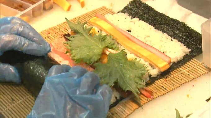 その年の縁起が良いといわれる方角に向かって食べる恵方巻。岡山高島屋では約30種類3000本の恵方巻が販売されています。