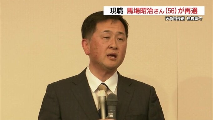 天草市長選挙は、無所属で現職の馬場昭治さん以外に立候補の届け出はなく、無投票で馬場さんの2期目の当選が決まりました。