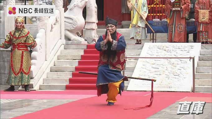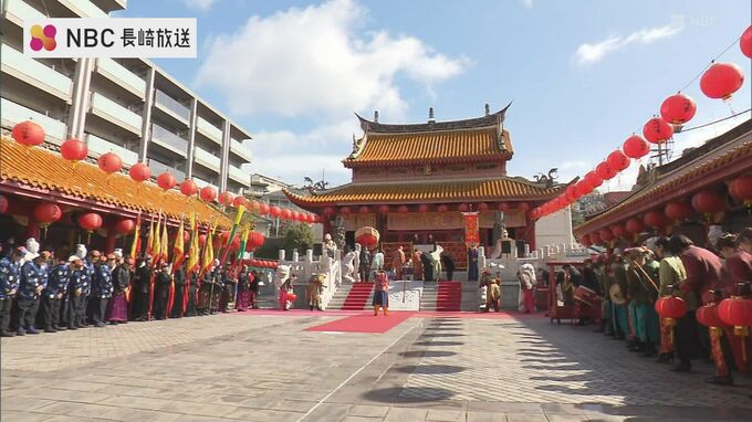 長崎市の孔子廟からスタートした媽祖行列は江戸時代、長崎に入港した唐船から、航海安全の神「媽祖」を唐人屋敷に安置する様子を再現しています。