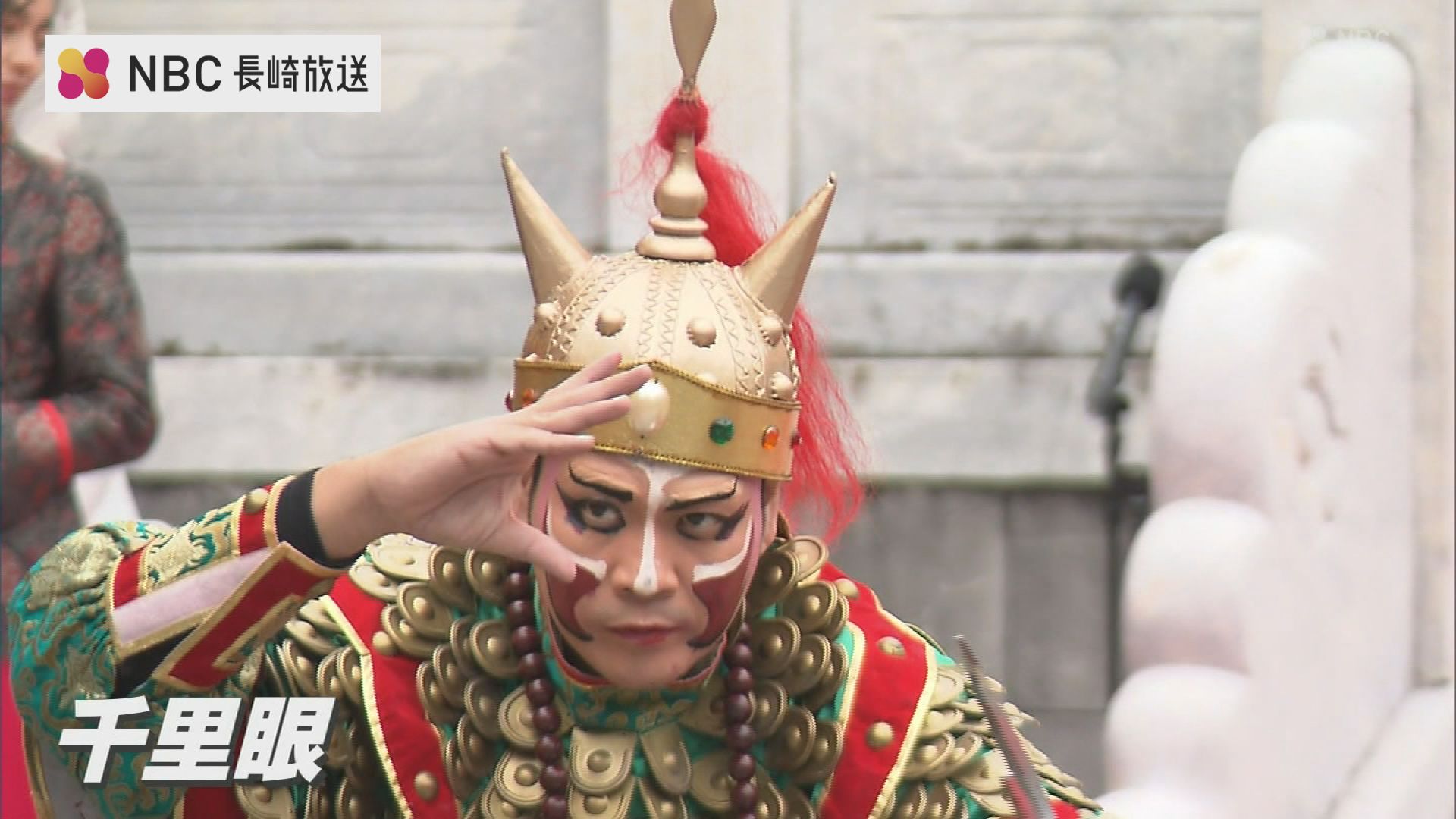 観客の邪気を払う「直庫(てっこ)」の演技や守護神の「千里眼(せんりがん)」「順風耳(じゅんぷうじ)」が演舞を披露し、その後、太鼓の音と共に長崎の街を練り歩きました。