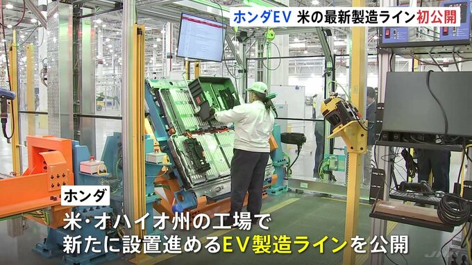 アメリカ・トランプ政権の発足で、EV=電気自動車をめぐる環境が大きく変わるなか、ホンダは柔軟な生産を可能にする新たなEVの製造ラインを公開しました。記者「こちらが初めて公開されたホンダの電気自動車用のバ…
