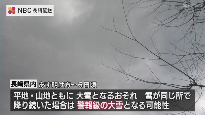 長崎県内は4日から6日頃にかけて大雪となるおそれがあり、気象台は交通障害や水道管の凍結などに注意を呼びかけています。
