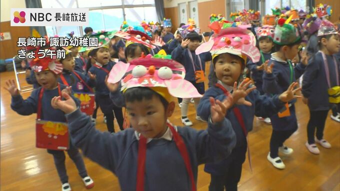 長崎市の幼稚園では3日朝、子どもたちが豆まきをして福を呼び込みました。手作りの鬼のお面とマスを身に着けた園児たち。3日朝、長崎市の諏訪幼稚園では園児およそ60人で豆まきを行いました。裃を着た福男役がステ…
