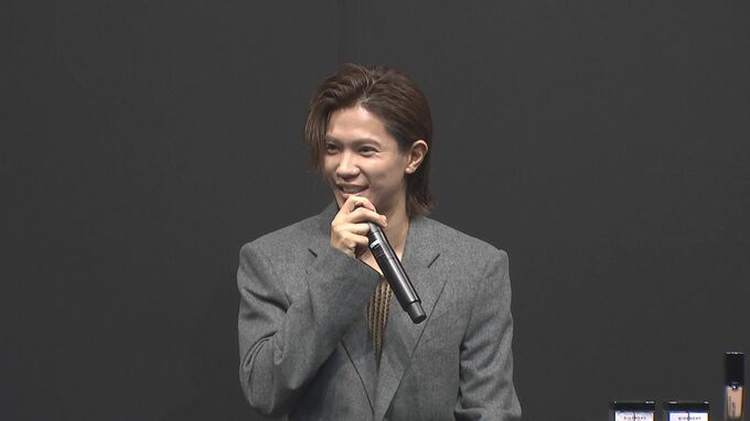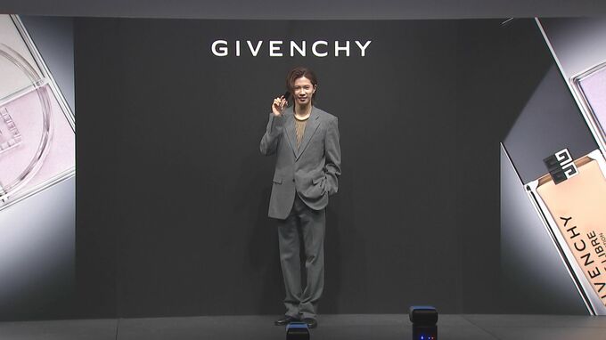 シックなスーツで登場した神宮寺さんは″どうもジバンシイ ビューティー アンバサダーのNumber_iの神宮寺勇太です″とクールに挨拶すると、途端に破顔し″うれしい、皆様の前でこれ(自己紹介)を言えてうれしいです。ちょっと家で何度か練習してきました″とお茶目に裏側を明かし笑わせました。