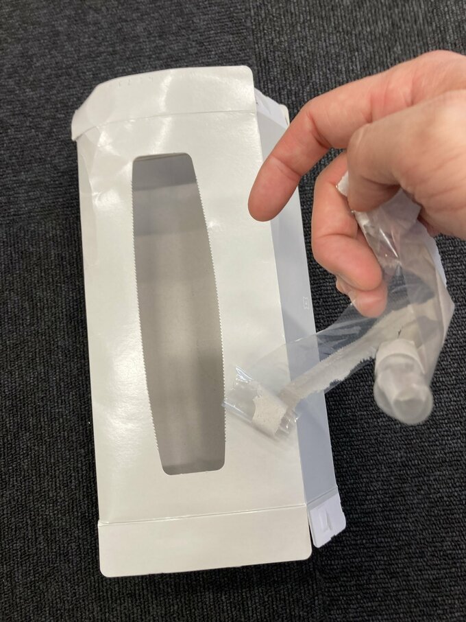 続けて「中のビニールも取ってくれると助かりますが、上から取るのは難しいですが、手を中に入れて剥がすと簡単に綺麗に取れます!気持ちいいのでやってみてください!」と、説明しました。