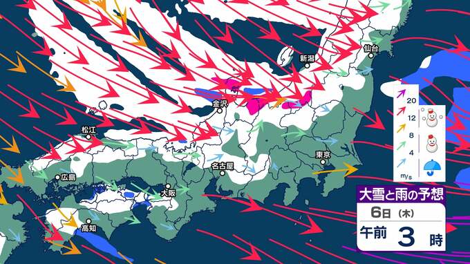 富山県・車両の立ち往生や大渋滞の発生が懸念 新田知事がメッセージを発表「車での不要不急の外出を控えて」「早めの帰宅やテレワークを」「運送事業者や荷主には、荷物の運送計画の見直しを」 チューリップテレビ 2025年2月3日(月) 16:00 国内 暮らし・マネー 6日(木)大雪と雨と風のシミュレーション