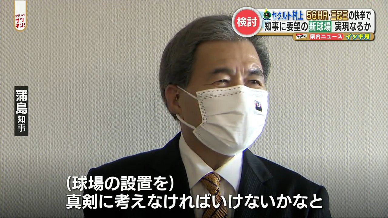 ヤクルト 村上 宗隆(むらかみ むねたか)選手の日本選手最多56本塁打と三冠王獲得を受け、蒲島知事は新球場の設置を検討することを明らかにしました。