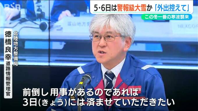 「5日がまず一番危ない。その前後の日も大雪の可能性が十分あるということで、用事があるのであれば3日には前倒して済ませていただきたい」