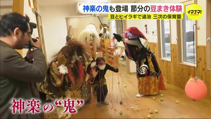広島県三次市の保育園で、子どもたちが「節分の豆まき」を体験しました。