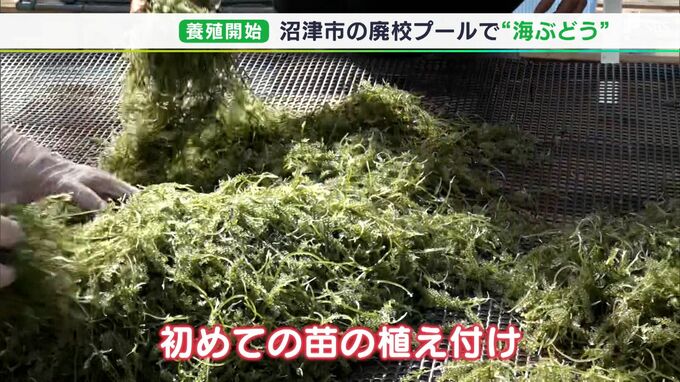 静岡県沼津市の廃校になった小学校のプールを再利用して、10月4日から海ぶどうの養殖が始まりました。2021年春に廃校になった静岡県沼津市の旧内浦小学校では、プールだった場所を再利用して海ぶどうを生産する準…
