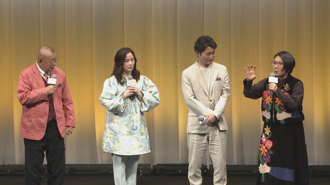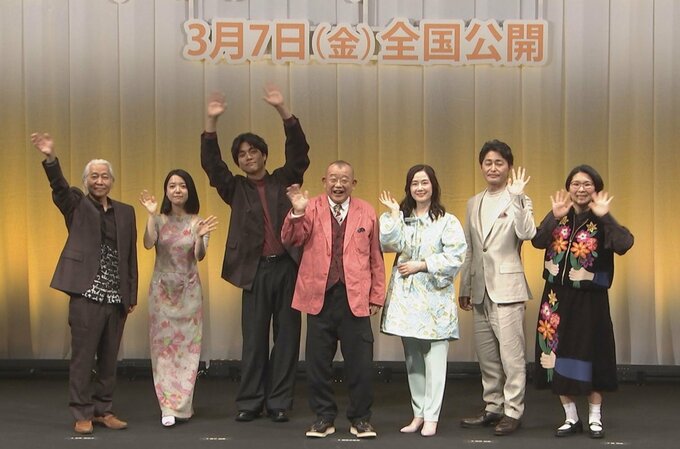 3日、笑福亭鶴瓶さん、原田知世さん、重岡大毅さん、上白石萌音さん、安田顕さん、くわばたりえさん、塚本連平監督が映画「35年目のラブレター」お披露目試写会に登壇しました。