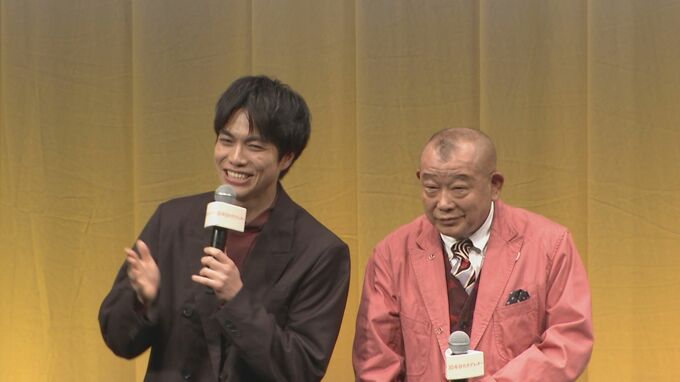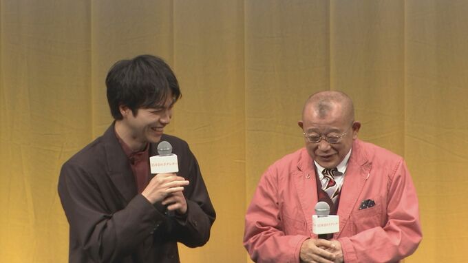 鶴瓶さんは、若き日の西畑保を演じた重岡さんが挨拶をする中、おもむろに眼鏡を取り、笑顔を見せると、重岡さんに“ちょっと僕の顔に似せてます?今”と指摘され、笑いをこらえながら、“すみません”と謝罪し、会場を笑わせました。